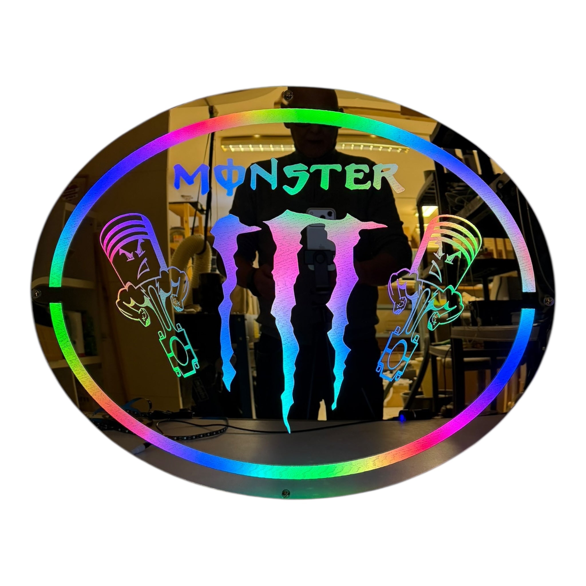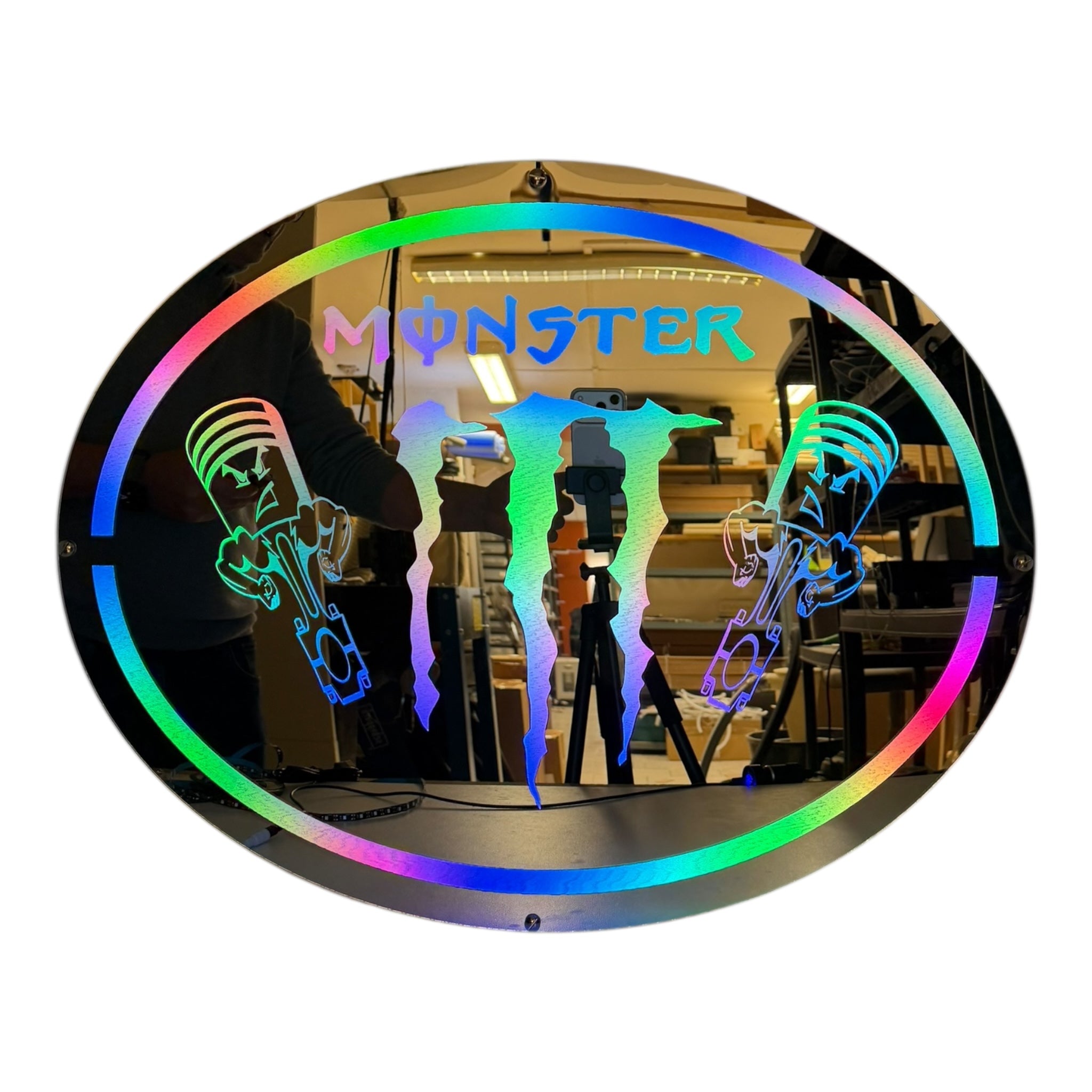 - Fond de cabine camion LUMINEUX ovale MONSTER 🚚 : Démarquez-vous avec cette enseigne lumineuse à l'effigie MONSTER qui apportera un look exceptionnel à une cabine de camion. Un design unique qui saura ravir n'importe quel chauffeur routier rock n roll.