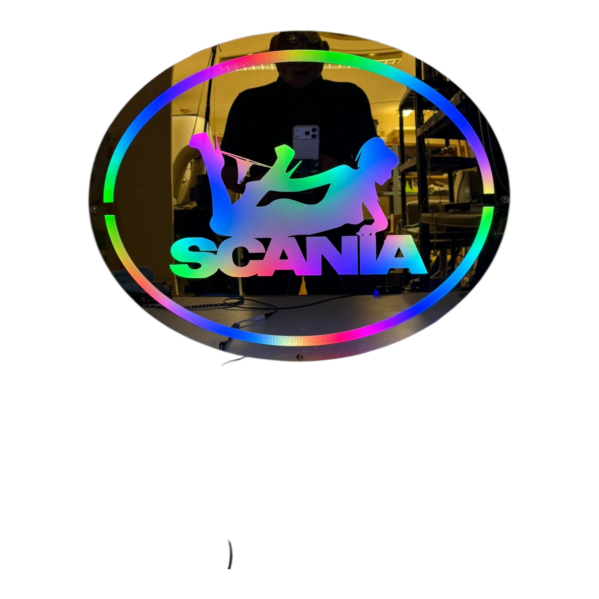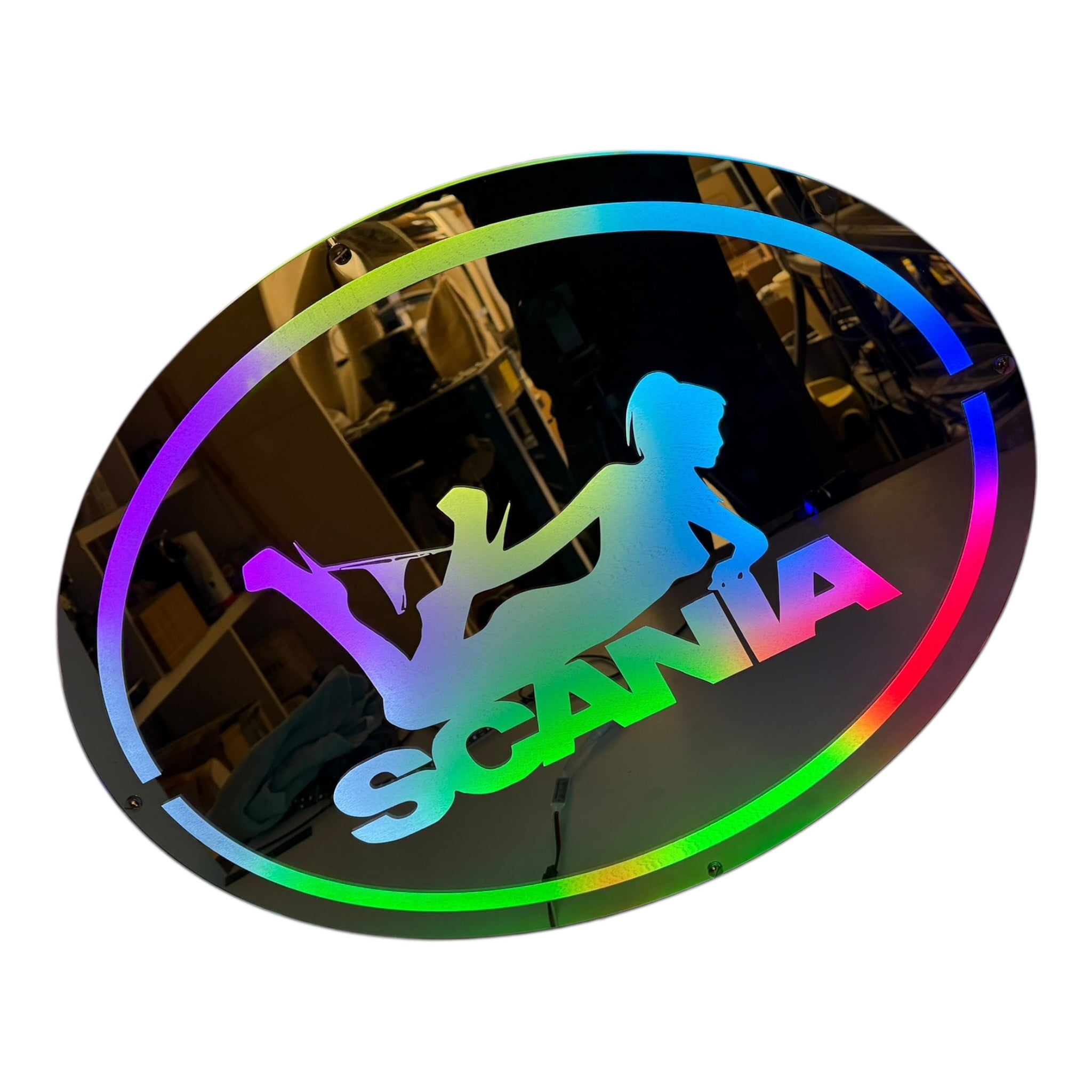 Donne du caractère à ta cabine avec ce Fond de Cabine Pin-Up Scania lumineux RGBW, une décoration audacieuse et stylée conçue pour les chauffeurs routiers passionnés.