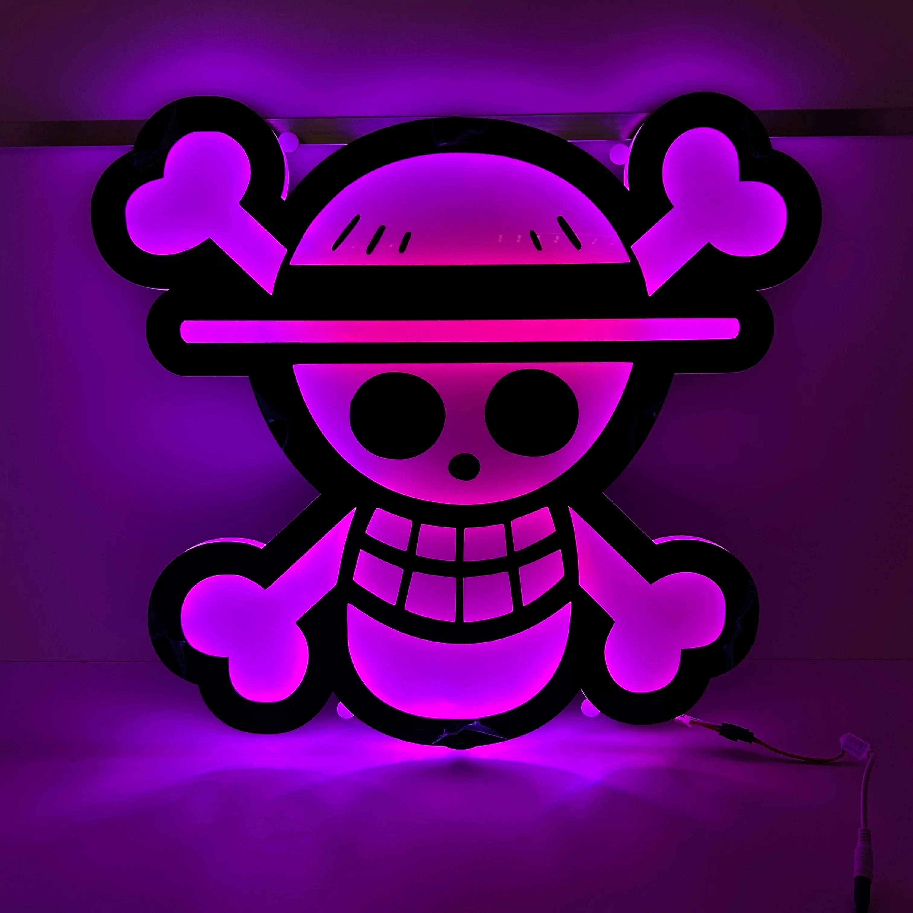Ajoute ton prénom ou un logo pour créer une plaque lumineuse One Piece totalement unique, qui fera de ta cabine un vrai navire de pirate moderne.