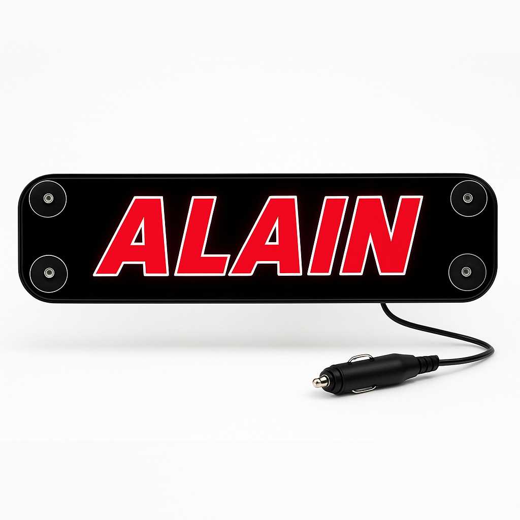 Personnalisez votre cabine de camion avec cette  enseigne lumineuse prénom   , alliant  éclairage coloré blanc puissant  et  prénom lumineux  pour un rendu unique de jour comme de nuit.