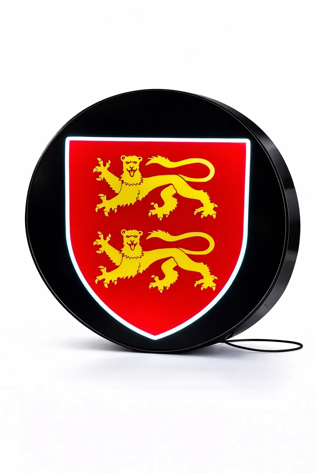 Chaque modèle est gravé avec précision dans nos ateliers Stick Olivier et sublimé par un éclairage LED intense qui met en valeur les deux léopards emblématiques de la Normandie 🦁🦁.