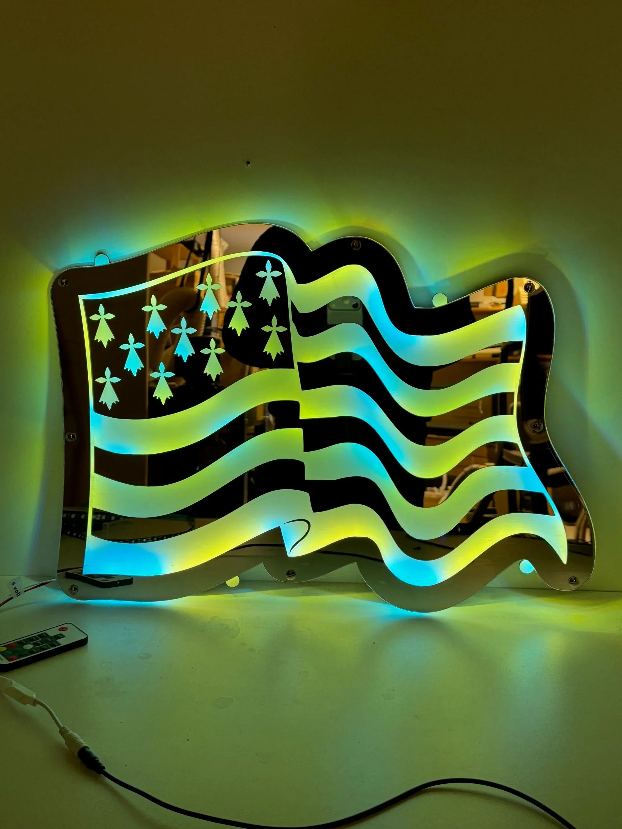 Embarque ta fierté bretonne partout avec toi grâce à ce fond de cabine miroir lumineux Bretagne signé Stick Olivier !