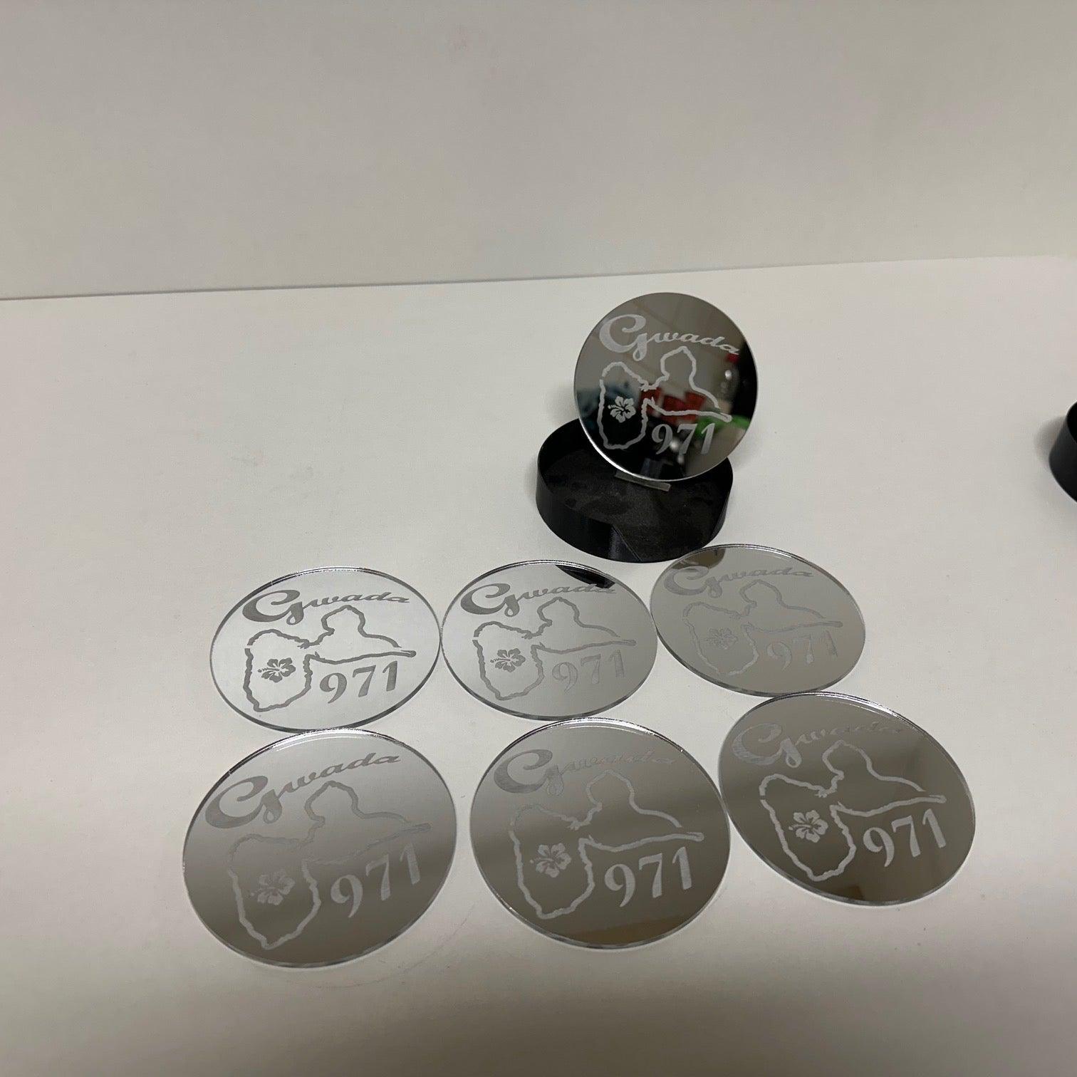 Découvrez nos élégants dessous de verre en miroir argenté incassables. Chaque pièce de 10 cm de diamètre est soigneusement gravée et découpée au laser en France. Protégez vos meubles des taches d'eau, de café et de thé avec style et légèreté. Pratiques et faciles à ranger, ils ajoutent une touche sophistiquée à votre décor.