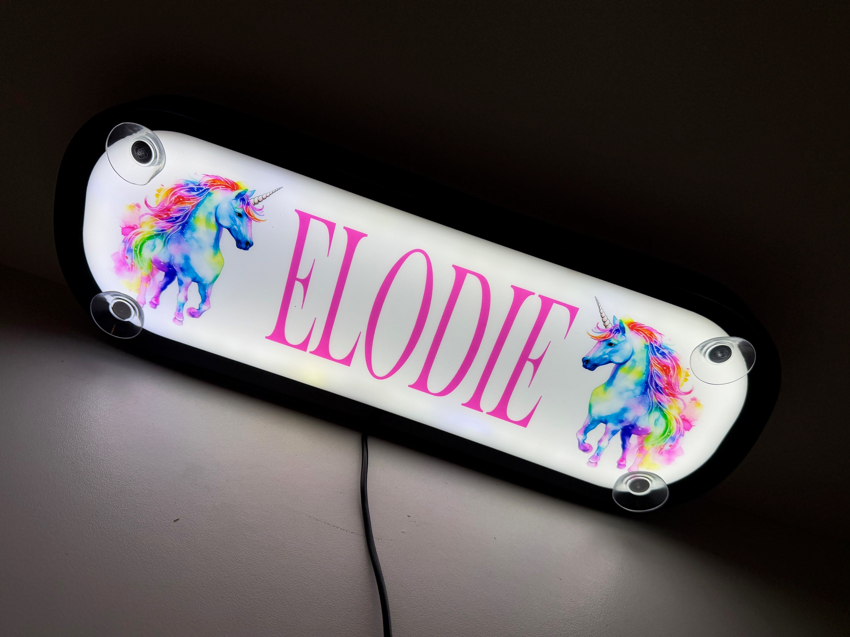 Personnalisez votre cabine de camion avec cette enseigne lumineuse prénom , alliant éclairage coloré blanc puissant et prénom lumineux pour un rendu unique de jour comme de nuit.