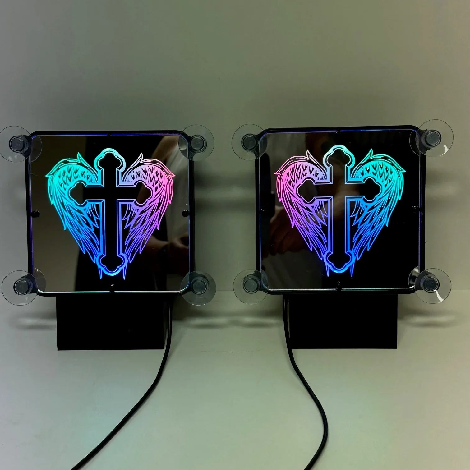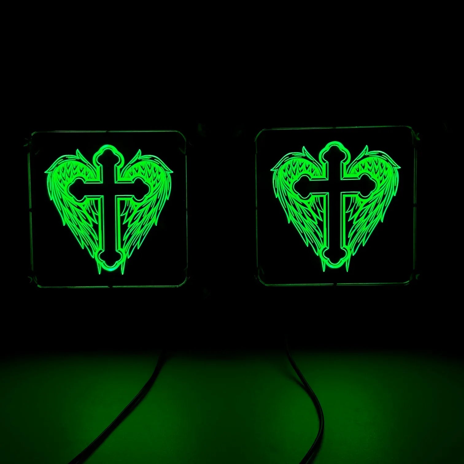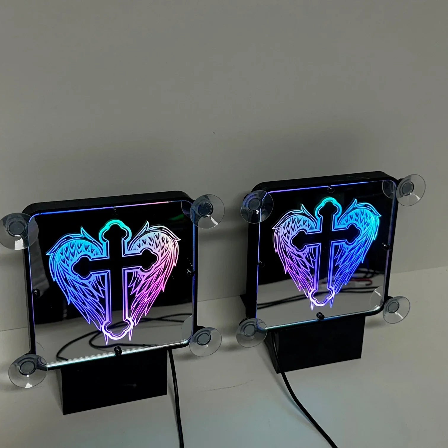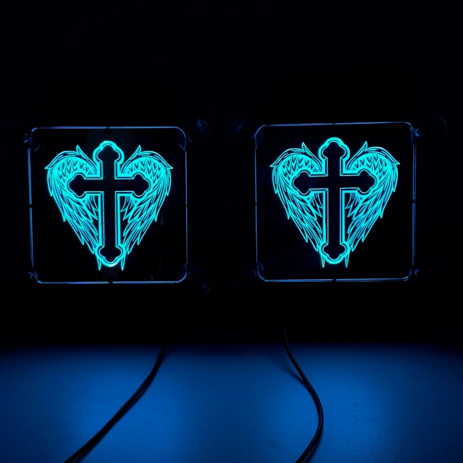 Affichez un style unique et rebelle avec notre plaque lumineuse LED personnalisée "Ailes d’Ange", spécialement conçue pour les chauffeurs routiers passionnés de custom.