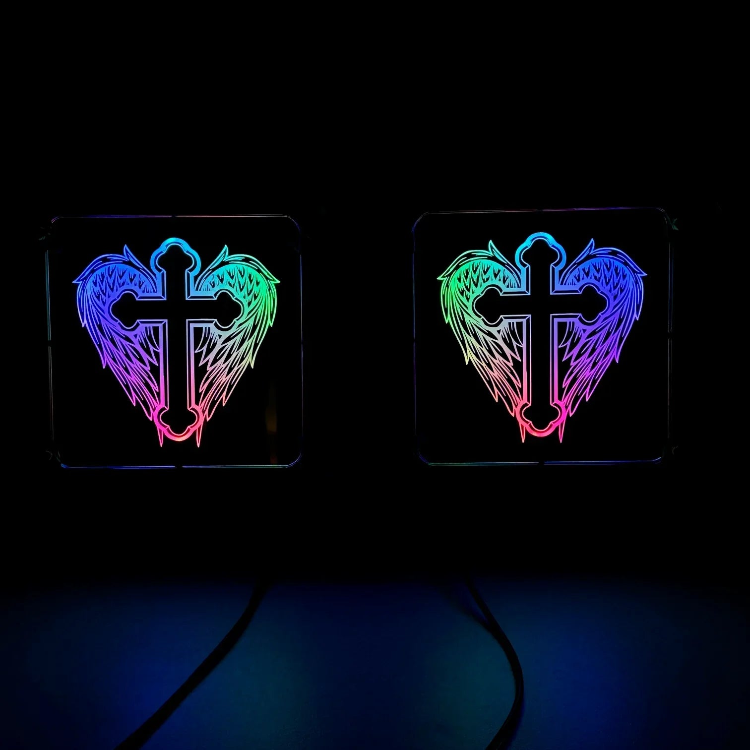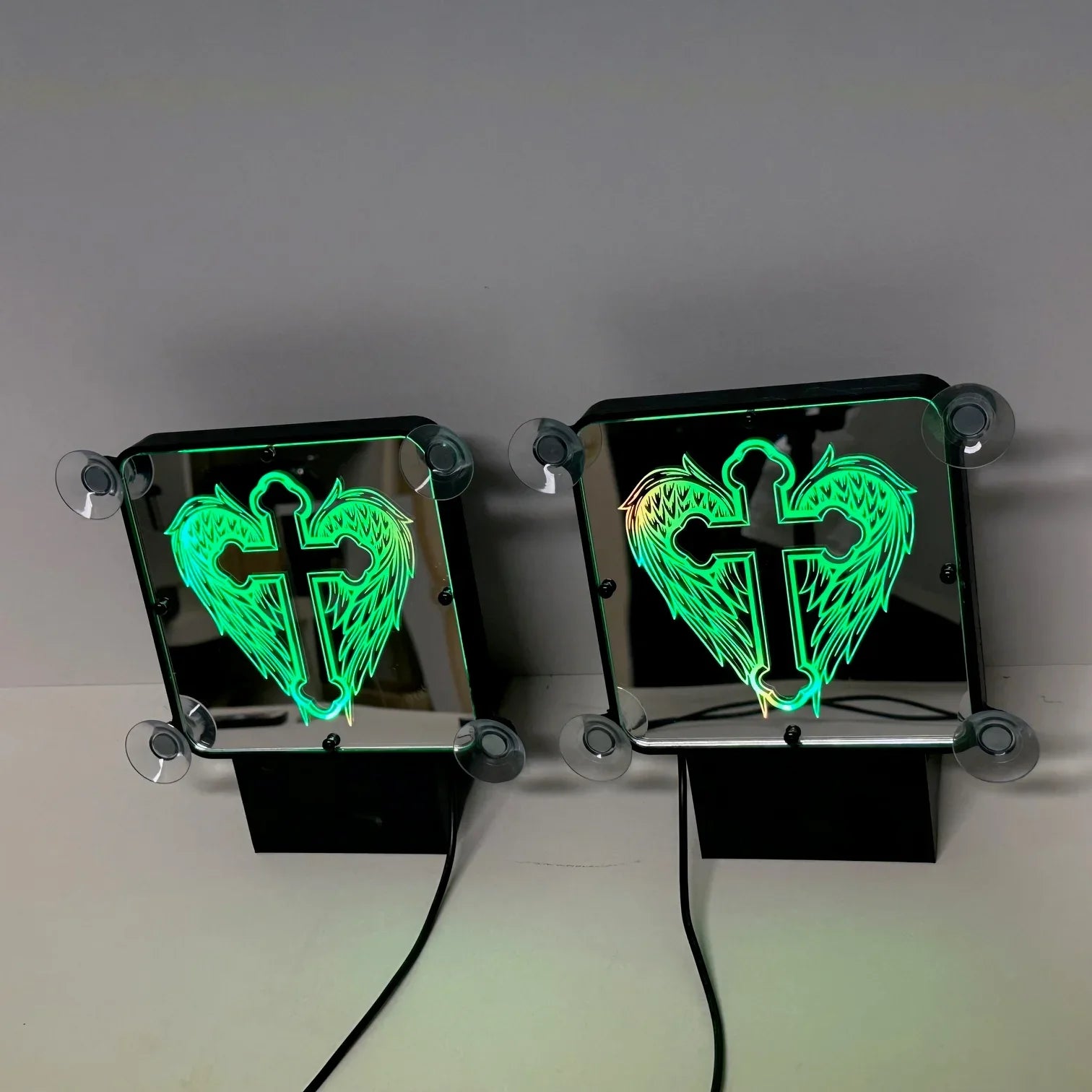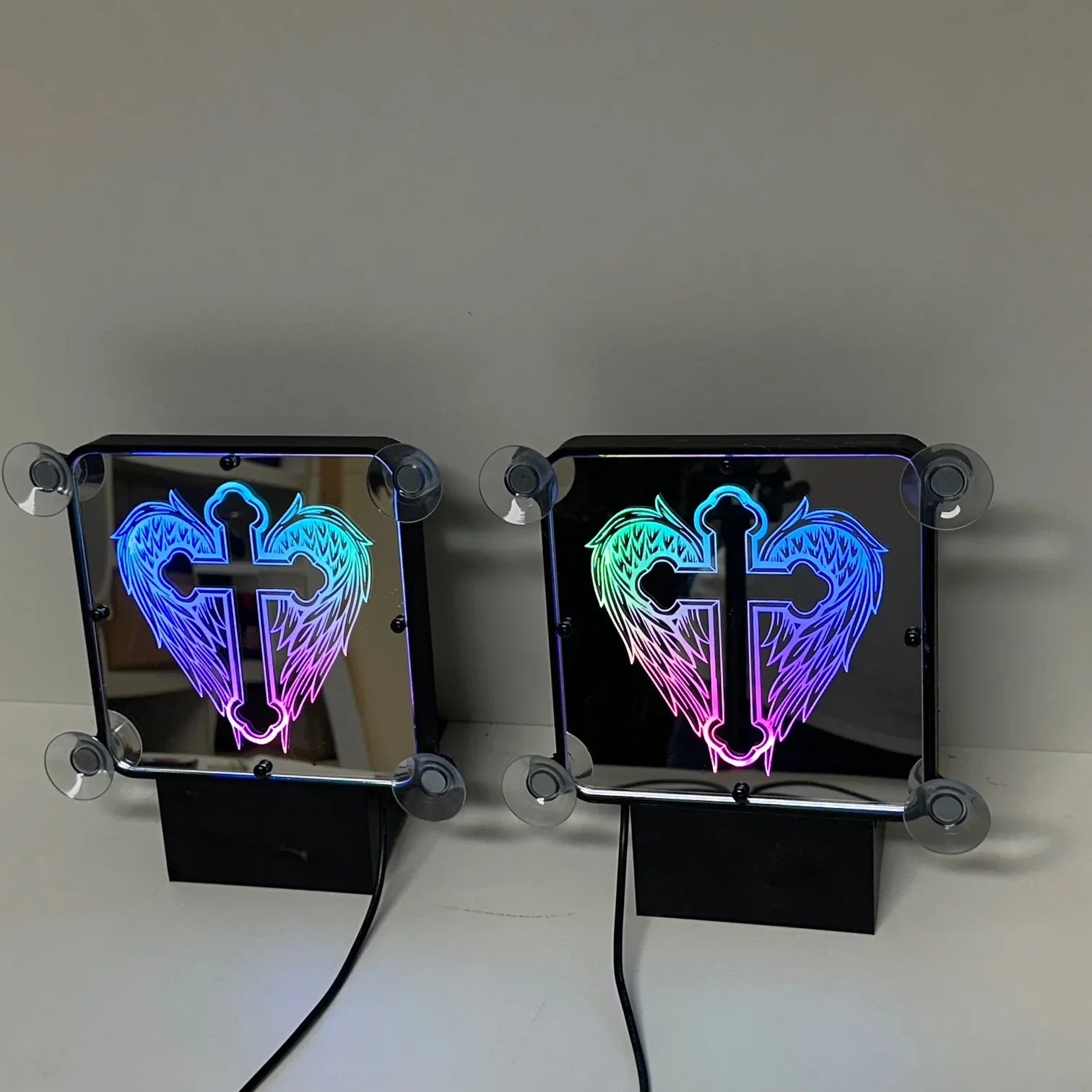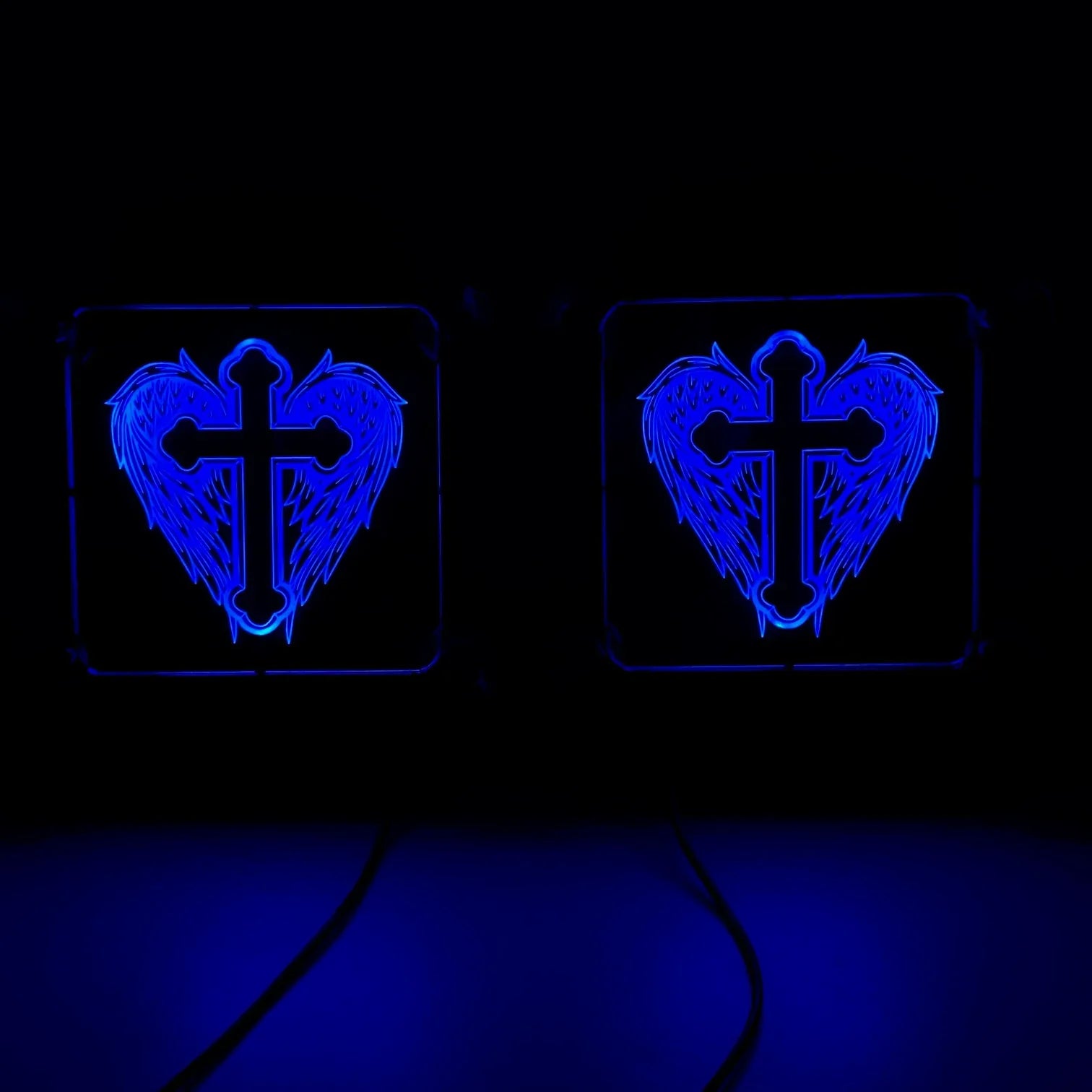 Affichez un style unique et rebelle avec notre plaque lumineuse LED personnalisée "Ailes d’Ange", spécialement conçue pour les chauffeurs routiers passionnés de custom.