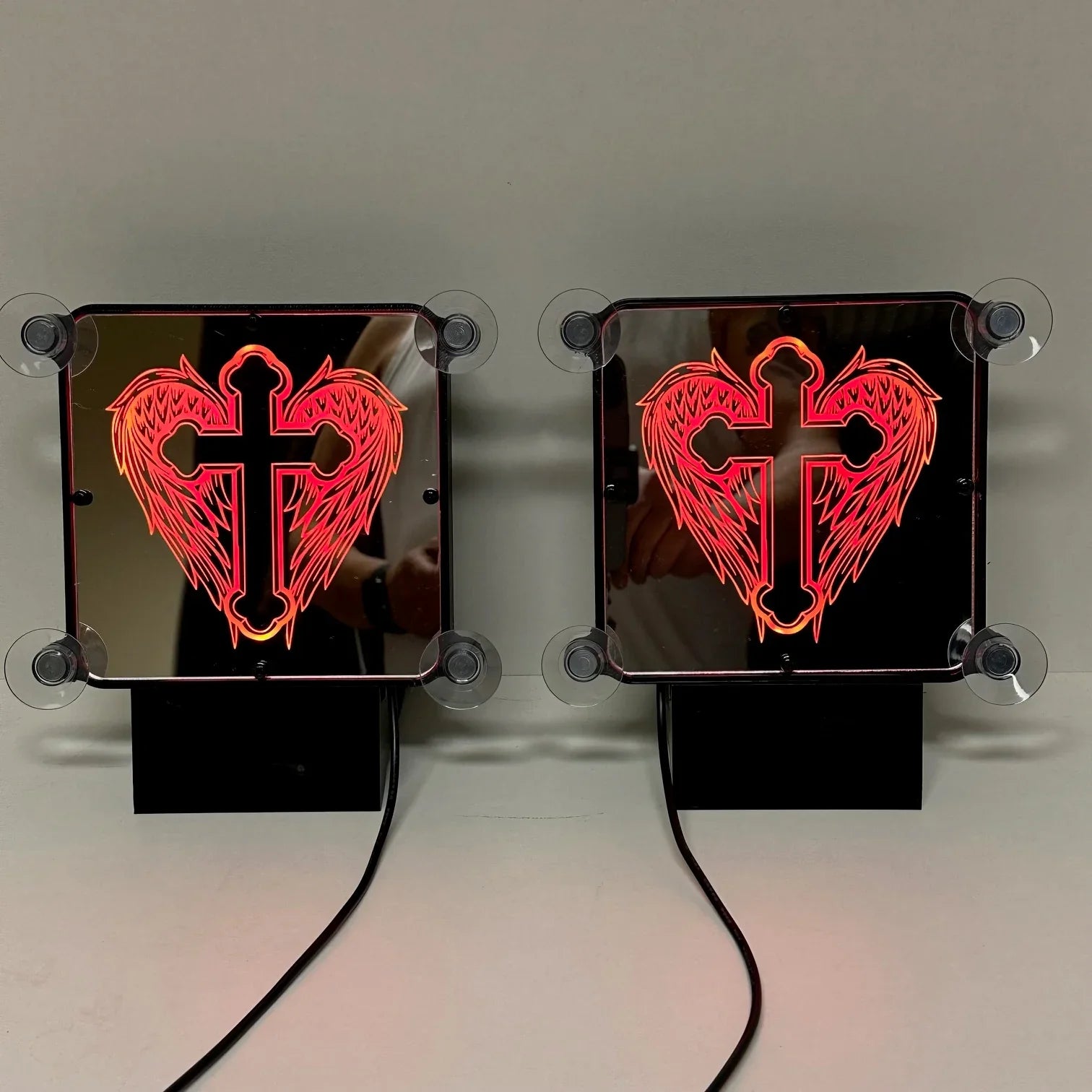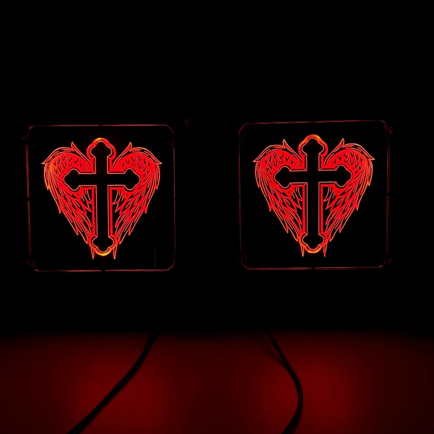 💀 Design impactant : une gravure précise représentant des ailes d’ange et une tête de mort, rétroéclairée pour un rendu saisissant.